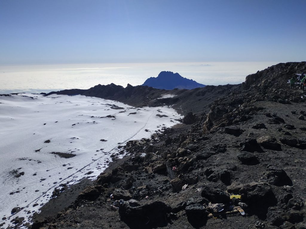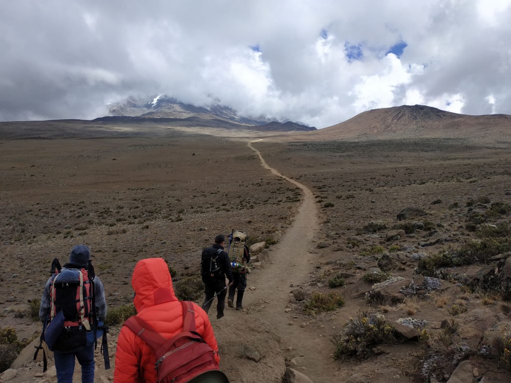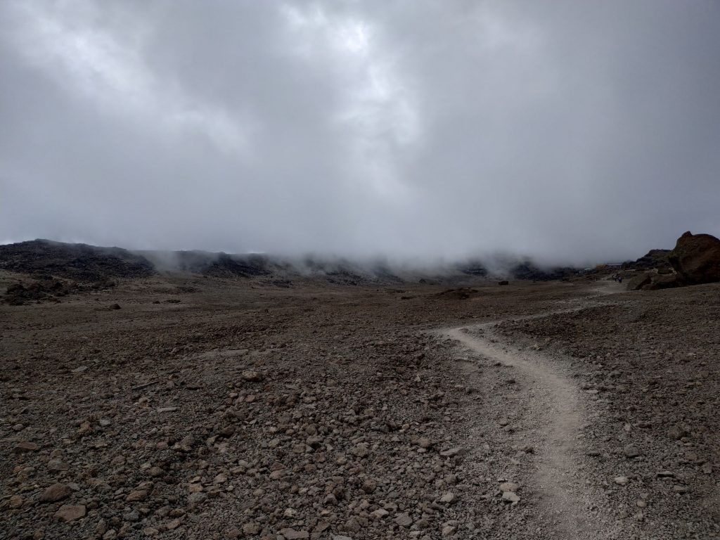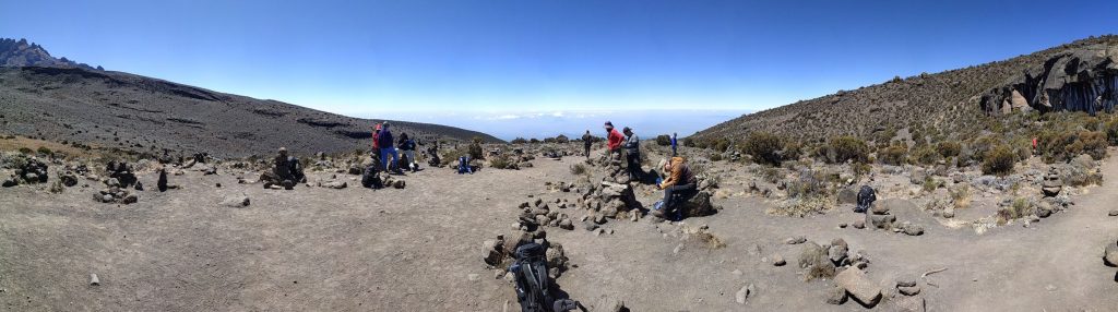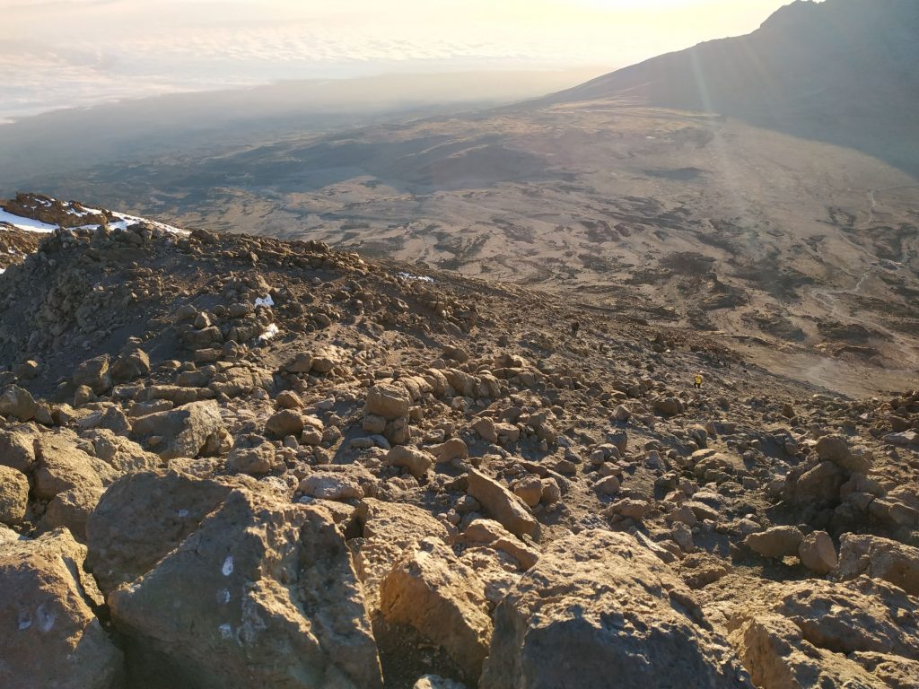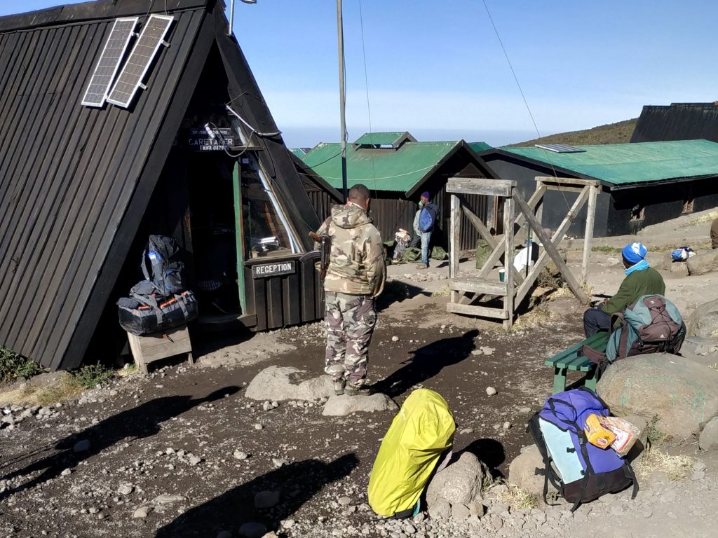 After a short break we prepared ourselves for the descent. This was almost as exhausting as the ascent. With reaching the Kibo Hut at around 12:00 p.m. and the first part of the day was over. We took a short break to rest before the descent to the Horombo Hut. In numbers this means we went 1167 meters up and 2144 meters down by 5:00 p.m. all at high altitude an thin air.